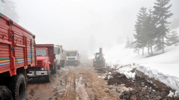 Cerattepe’de Cengiz Holding’e ait Eti Bakır A.Ş. tarafından çıkarılmak istenen bakır madeni için 3 gün önce bölgeye gelen iş makineleri, polis ve a…