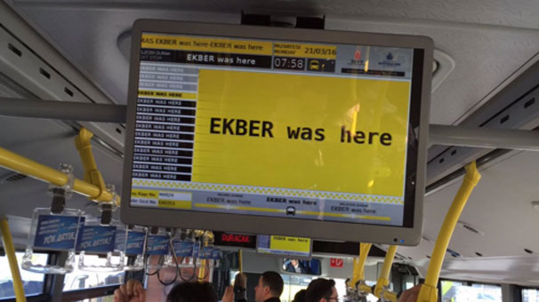 İETT sisteminin hacklendiği ortaya çıktı. Sabah saatlerinde İETT’nin sitesine girenler ve toplu taşıma araçlarındaki ekranlarına bakanlar “EKBER wa…