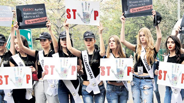 Ulusal Meclis’in yakınlarında toplanan grup ellerinde “Kadına ve kızlara yönelik şiddet hepimizi etkiliyor. Bir şey yapın” yazılı pankartlar taşıdı…
